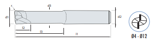 Freza TURBO cu 2 dinti si acoperire TiAIN. Unghi elicoidal la 5 grade. Spatiu pentru coada. Unealta de înalta performanta: substratul, acoperirea si forma sunt special create pentru aschiere la viteze mari - se poate lucra cu rate de avansare mari cu aplicare mica. Speciala pentru inlaturarea volumului mare de aschii (cm3/min). Pentru producatorii de scule si mulaje. Scade rapid timpul de frezare. De asemenea pentru frezare uscata. Scop universal pentru materiale normale/foarte rigide.